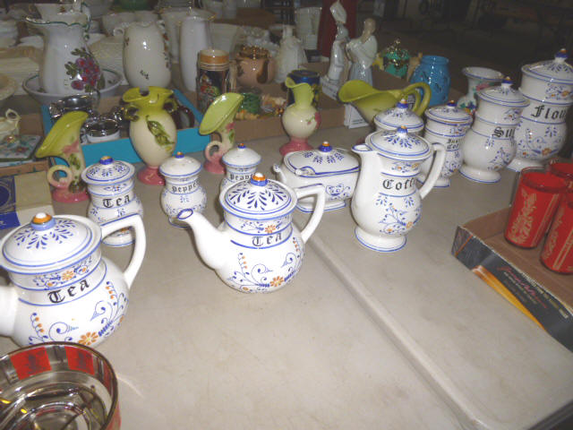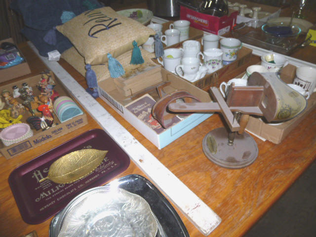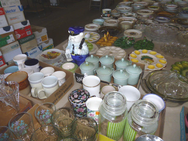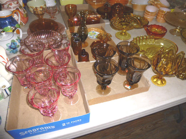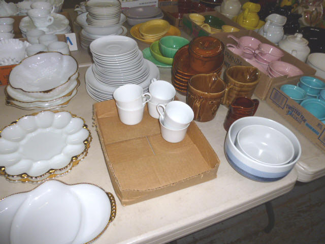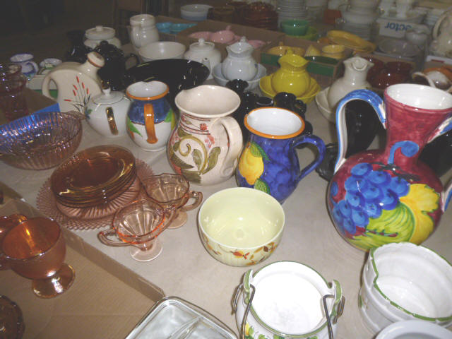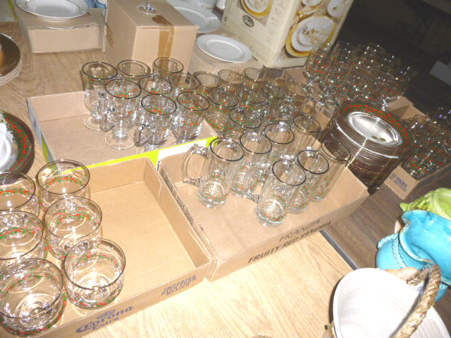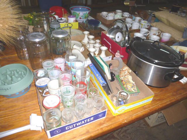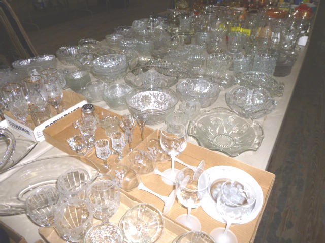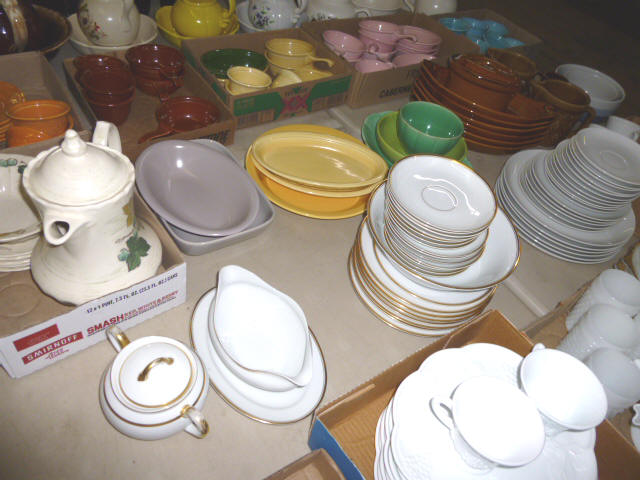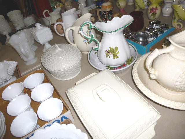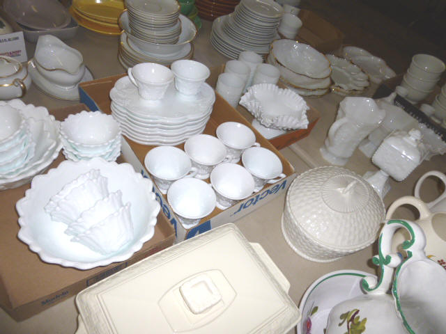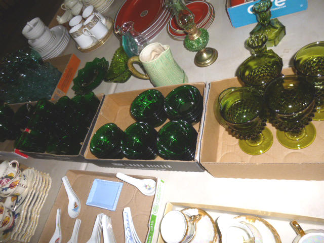 Glassware-- Winfield. High School Plates 1910-1972 Winfield Centennial Plate 1873-1973 Moline Centennial Plate 1879-1979 Royal Dalton Dinner China Cut & Pressed glass bowls, plates, pitchers Fire King Bowls, cups, plates Large Assort. milk glass McCoy pitchers & bowls (2) NIB Gibson dinner ware, 4 place Shaving & mustache cup collection Christmas glassware Pink & Green Depression Assort. Cobalt Blue glassware Assort glassware many colors & patterns --- FURNITURE--- (3) Queen size Hollywood beds, complete Queen metal sleigh bed frame only 2-drawer wood lateral file cabinet, w/ lock Computer desk w/ bookcase top Large TV stand w/ electric fireplace & storage Brown wicker corner sofa, 2-piece Matching ottoman w/ storage Matching table w/ umbrella 5-shelf open display unit 8- hole cubical storage cabinet Small Knee-hole desk “White clad” end table Vintage 4-drawer dresser Large Slat-back sewing rocker Chrome & Black executive chair |