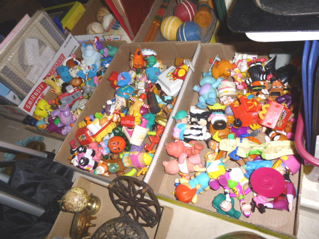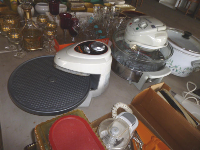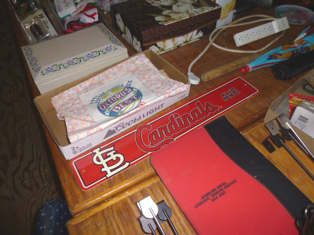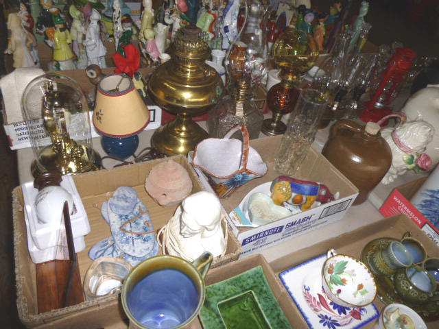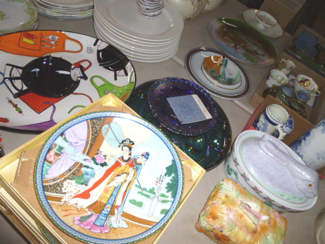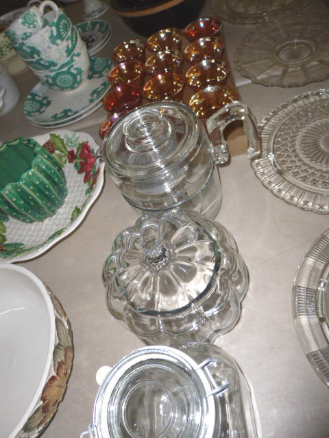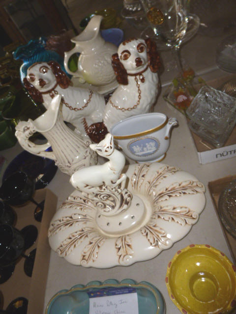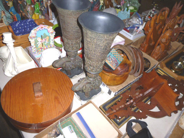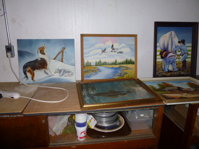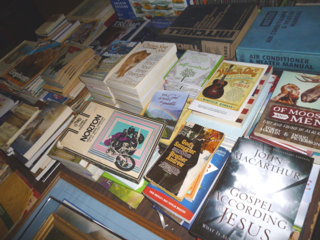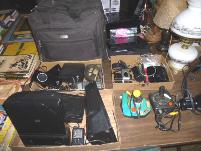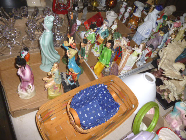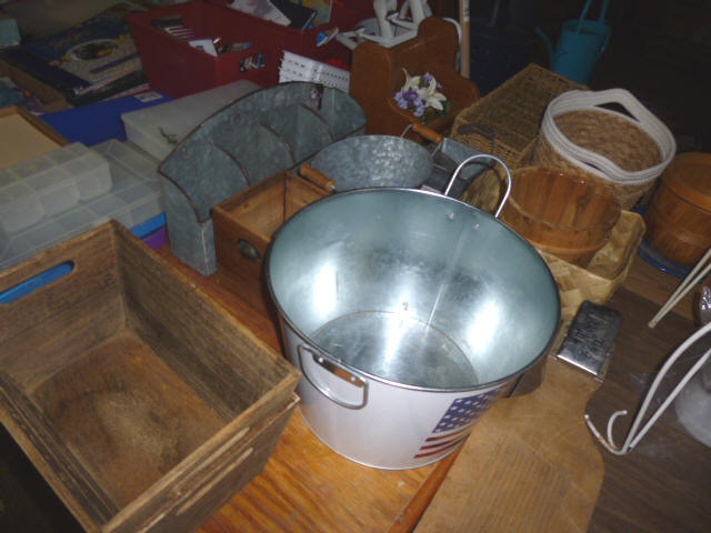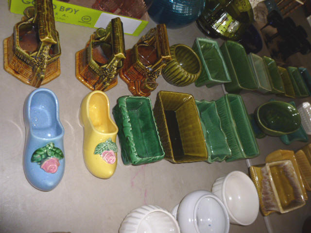 --- FURNITURE--- King Hollywood frame w/ brass headboard Queen Hollywood bed, complete Metal baker’s rack Wakefield double dresser w/ mirror Tall & narrow lighted display, mirrored back Drop-front secretary w/ hutch top (2) narrow hall tables White pressed wood shelf unit Walnut grain book shelf White wicker patio furniture 4-drawer metal file cabinet 4-drawer chest of drawers 4-drawer curved front chest of drawers --- PRIMITIVES & COLLECTABLES --- Costume Jewelry, belt buckles, trinkets Assort. McCoy vases McCoy cookie Jars Red Wing Pitcher & center piece Fire King dishes Kerosene Lamps & Lanterns Assort. Ceramic figures 45 & LP records & albums Old yard long photographs 2-gal crock butter churn Several tall metal plant stands Assort. old books |