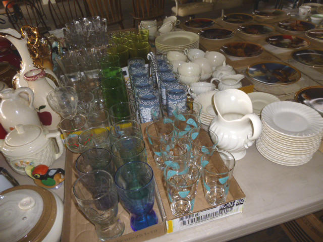 --- Hamilton Beach Microwave Toshiba 55” flat screen TV Vizio 32” Flat screen TV 12 cu. ft. upright deep freeze “Sleep Design” Queen size adjustable bed Twin size Hollywood bed, complete (2) Queen size Hollywood beds, complete Day bed sofa White Enamel cabinet Gray Cloth Recliner (6) rolling White Vinyl dining chairs Vanity dresser Green Cloth sofa chair (2) Light blonde Armoire Early American floral print sofa Large Early American China cabinet Computer desk Full size wood poster bed frame only (6) Patio chairs Antique metal patio glider (2) Antique metal patio chairs