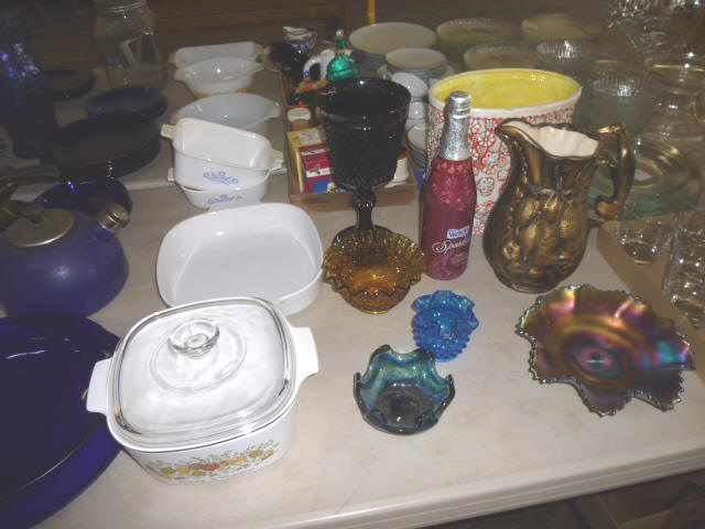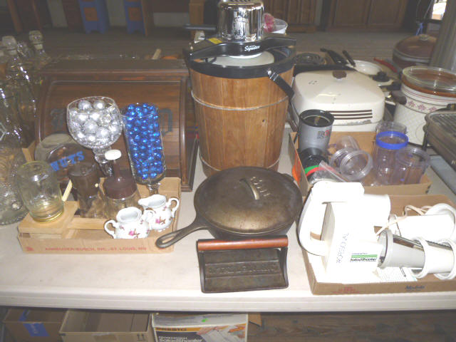 --- Black Frigidaire double door refrigerator, w/ ice & water in door, ice maker Kenmore Electric range Speed Queen automatic washer “Element” 32” flat screen TV Queen bed w/ dark wood headboard, complete “Bassett” 5-drawer Chest of Drawers Matching double dresser w/ mirror Floral Print triple sofa Matching sofa chair w/ ottoman Dual reclining love seat, brown glove leather Large oval dining table w/ 2 lg. leaves (6) Tall back dining chairs gold cloth seats Tall lighted China Hutch Round Formica top dining table w/ 2-leaves 4-drawer black enamel chest of drawers 4-drawer black & red enamel chest of drawers Gold frame coffee & end tables, glass top Pressed wood computer desk --- HOUSEHOLD --- Assort. Glassware & dishes Assort. small kitchen appliances Table & Dresser lamps Floor lamps Blankets & Bed linens Bath & kitchen linens Sewing & craft supplies & material Electric ice cream freezer Cameras & phot equipment Large assort. canning jars & lids, qt’s/pt’s Singer Console sewing machine |