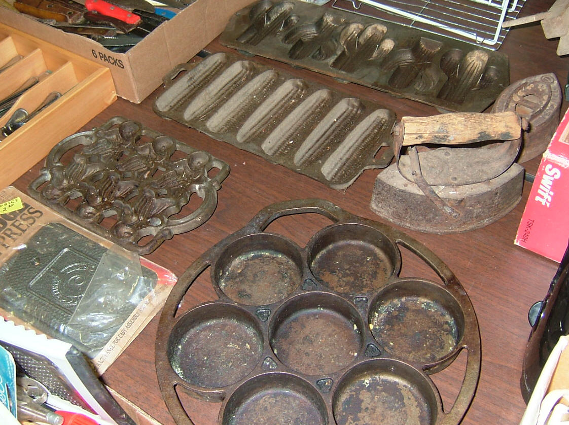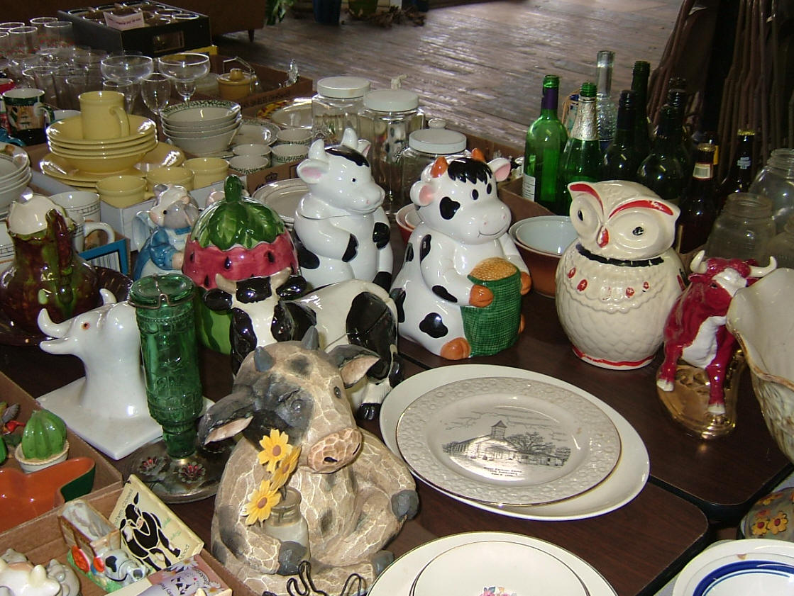 COLLECTABLES --- A few kerosene lamps Several Cast Iron cornbread molds (2) Old stock saddles for decorations Holstein cow cookie jar collection “Elvis” life size cardboard cut out Wood egg crate Assort. Christmas decorations, some old Assort. Baskets Lots of Cowboy & western room decorations Several Printers trays & spoon holders Several Large Quality Framed Pictures & Prints Singer treadle sewing machine cabinet only Wood quilting frame (2) 7’ long unfinished church pews --- GLASSWARE & HOUSEHOLD --- Assort. Blankets, bedspreads & linens Assort. Bath towels & linens Large assort. Upholstery & sewing material Assort. Small kitchen appliances Several 24” fans Maple TV tray set Assort. Totes & storage containers GE 5,200 btu window a/c, 110volt Assort. Flower pots & vases Several area rugs