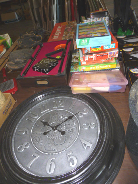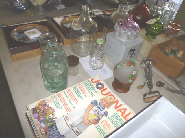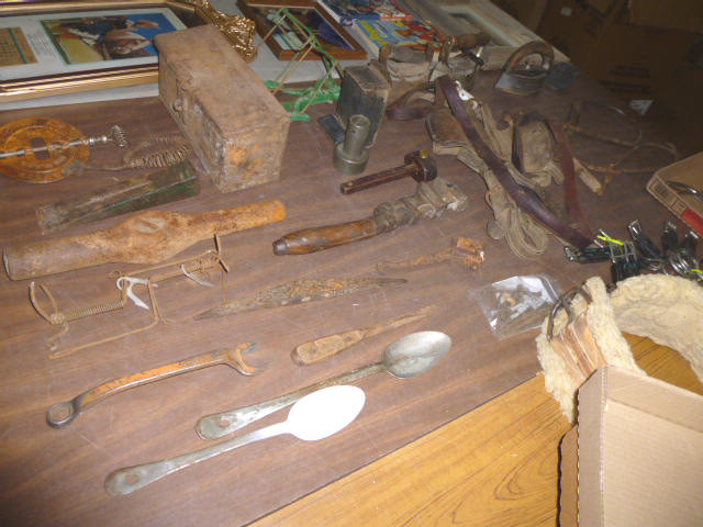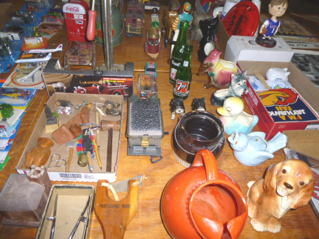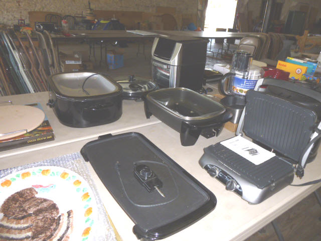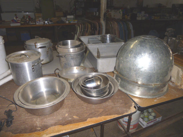 --- Large Kenmore chest deep freeze Sharp microwave Maple Dresser/Armoire Full size Maple Spindle bed frame only Antique “Majestic” tube type console radio Bunk Bed w/ Drawers on Both ends Roll-top Computer desk 3-drawer dresser (3) 3-drawer book pine shelves (2) Tall pressed wood shelf units Round Black Enamel dining table (4) Black Enamel spindle back chairs White Wicker hanging porch swing, padded Barn Wood patio sofa 2-door tall metal utility cabinet Assort. old wood straight chairs 2-drawer filing cabinets Assort. Small Tables --- HOUSEHOLD & GLASSWARE--- Farber Ware 4-in-1 Griddle Assort. Small kitchen appliances Assort. glassware & dishes Blankets & Bedding Pint canning jars Assort. Large, SS commercial pans & pots Assort. old jars & jugs Pet Carriers & Ramps Round Metal Fire pit